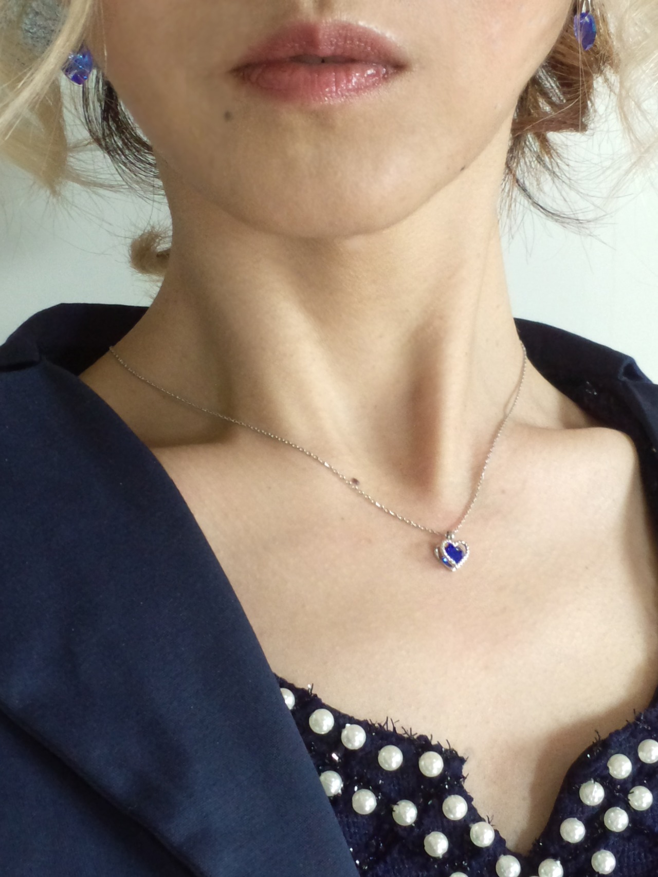 とても鮮やかな青だけど、大き過ぎないサイズ感が、場所を選ばず上品に身に着けられます。